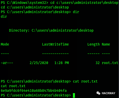 利用SYSTEM权限的nc shell,进入桌面中,即可在root.txt