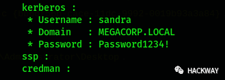 即可获取域用户信息Sandra的和其明文登陆密码sandra:Password1234!
