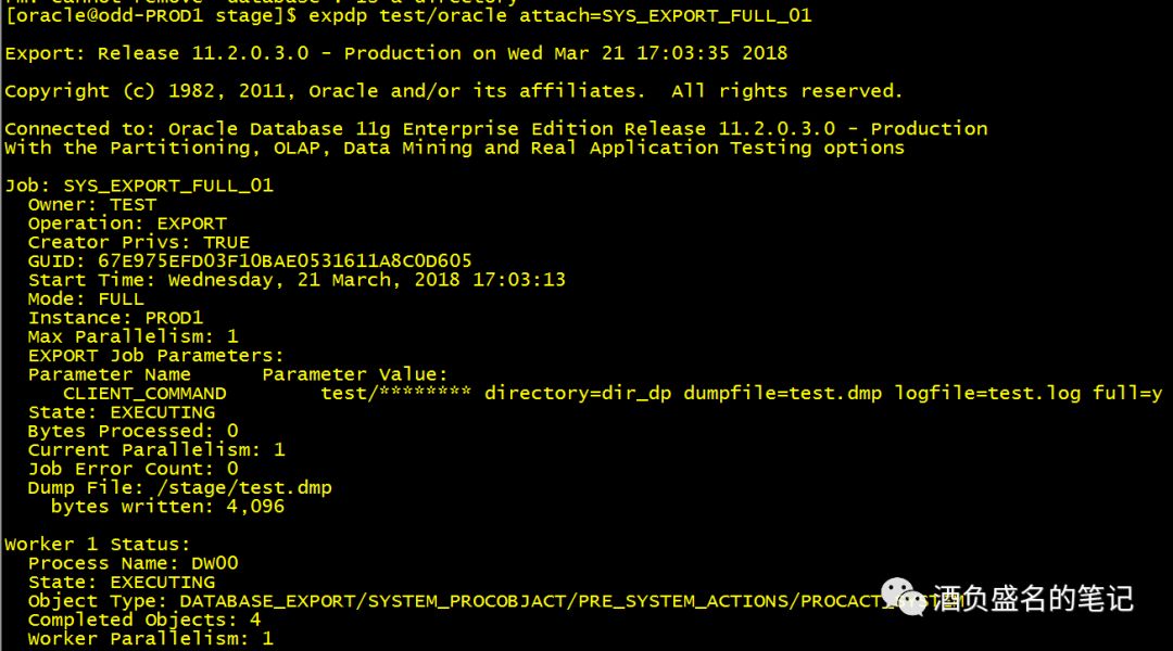 总结:停止数据泵,要通过attach追加到当前数据泵进行操作,而不是在操作系统级别kill -9进行。