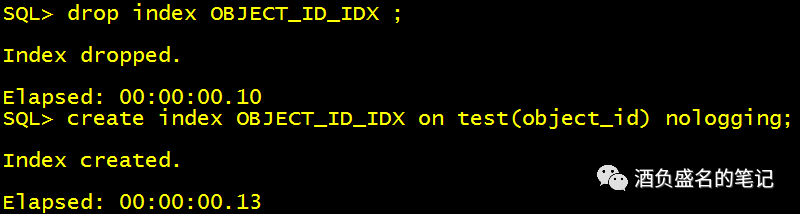 总结:以并行+nologging的方式创建索引可以加快索引的创建速度,最好是在系统资源相对充足的时候进行创建。另外索引创建完毕记住要把索引的并行度去掉,自己挖的坑要及时填。