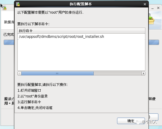 如上图所示,在安装即将结束时,也会提示以root用户执行相应脚本: