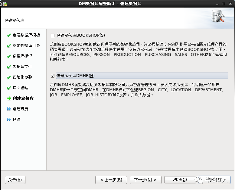 在测试环境下,为了方便测试选择创建示例库DMHR: