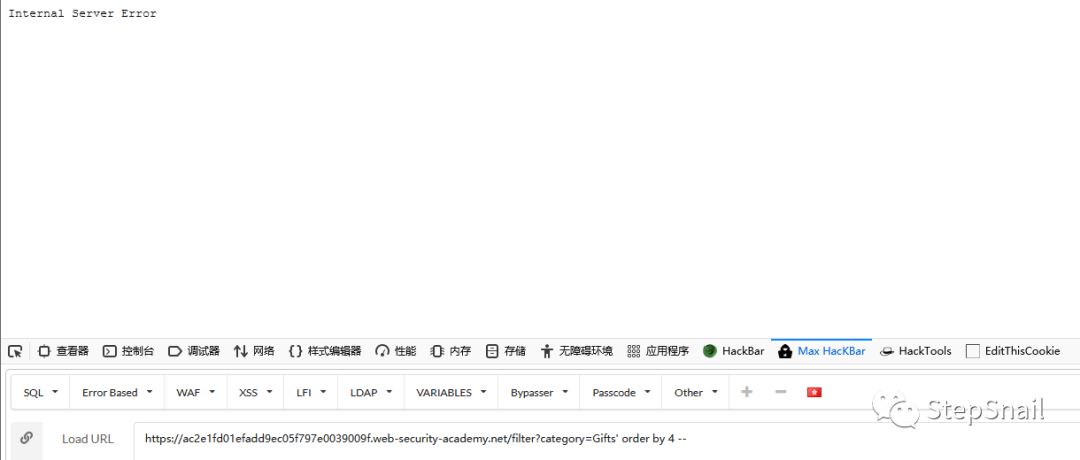 同样,应用程序实际上可能会返回此错误消息,也可能返回通用错误或没有结果。当NULL的数量与列数匹配时,数据库在结果集中返回一个附加行,其中包含每列中的空值。对HTTP响应结果的影响取决于应用程序的代码。如果很幸运,可以在响应中看到一些其他内容,例如HTML表上的额外行。否则,空值可能会触发不同的错误,例如NullPointerException。最糟糕的情况,从响应中可能无法判断是否由不正确的空数量引起的,从而使得第二种方法无法确定列数。