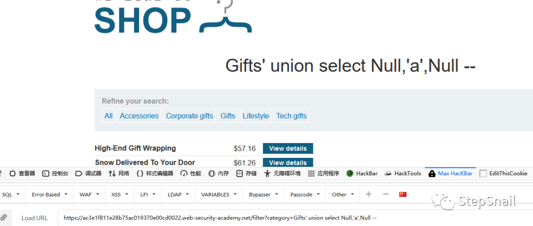4.3.3 使用SQL联合注入攻击来获取所需的数据