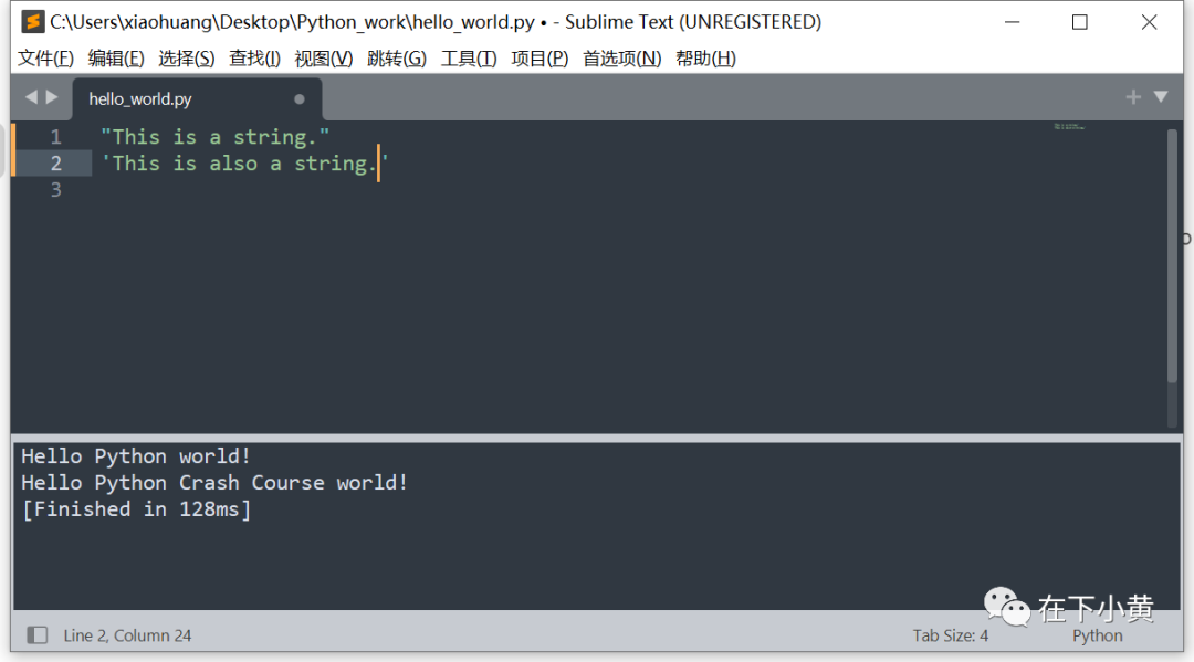 字符串就是一系列字符。 在Python中,用引号括起的都是字符串,其中的引号可以是单引号,也可以是双引号