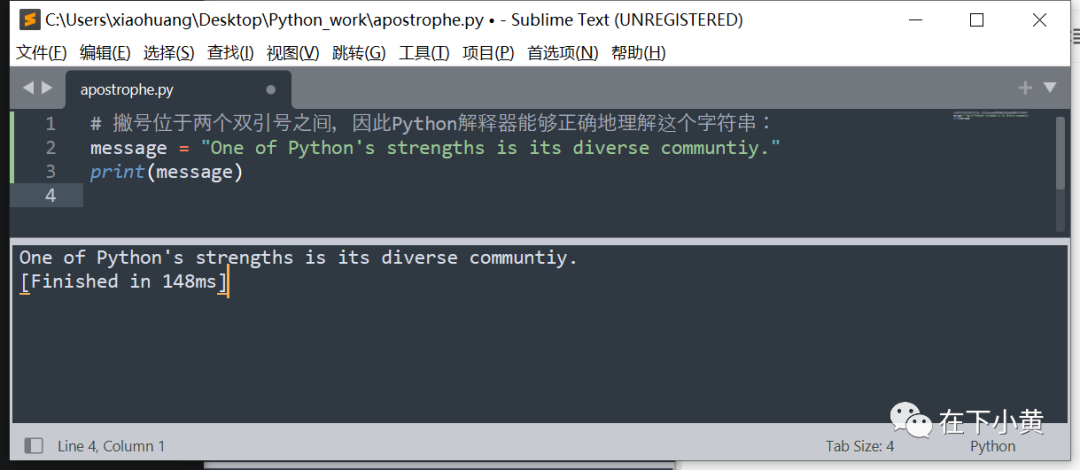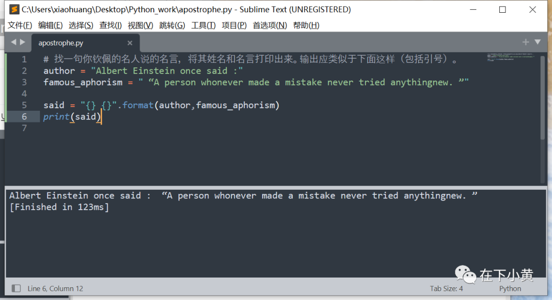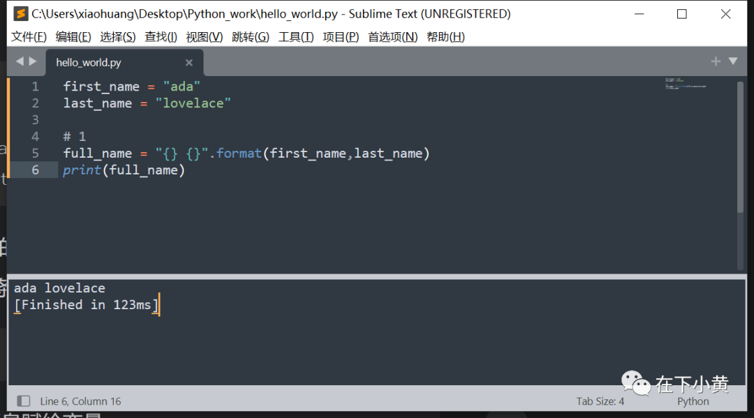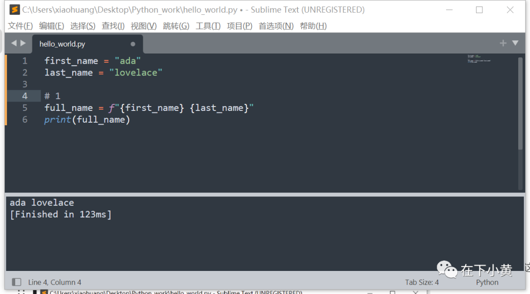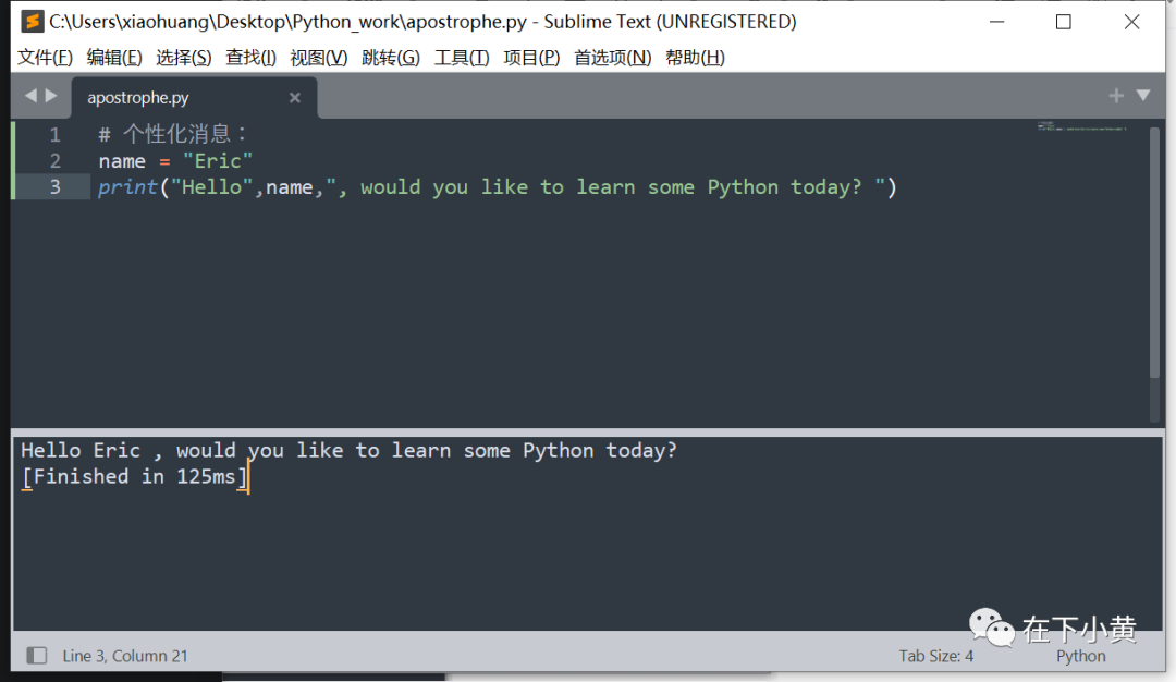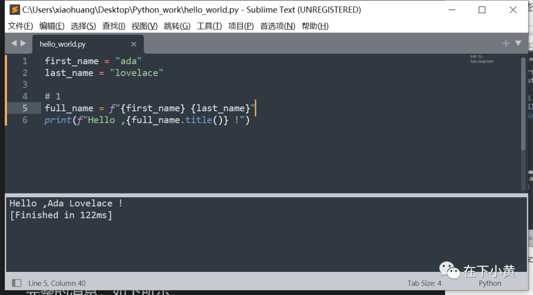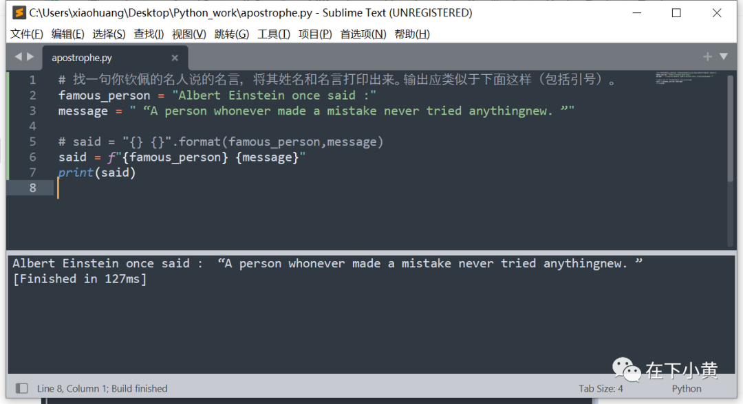 这种字符串名为f字符串。f是format(设置格式)的简写,因为Python通过把花括号内的变量替换为其值来设置字符串的格式