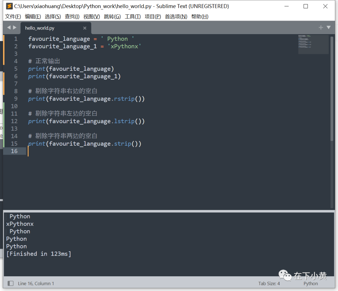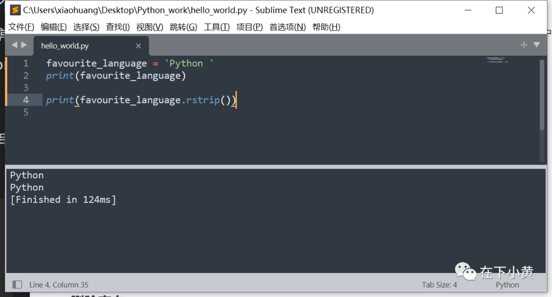 Python能够找出字符串开头和末尾多余的空白。要确保字符串末尾没有空白,可使用方法rstrip( )【暂时删除】。