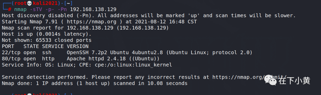 nmap -sTV -p- -Pn 192.168.138.129