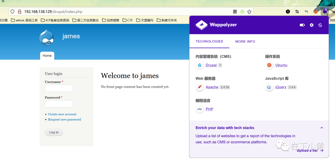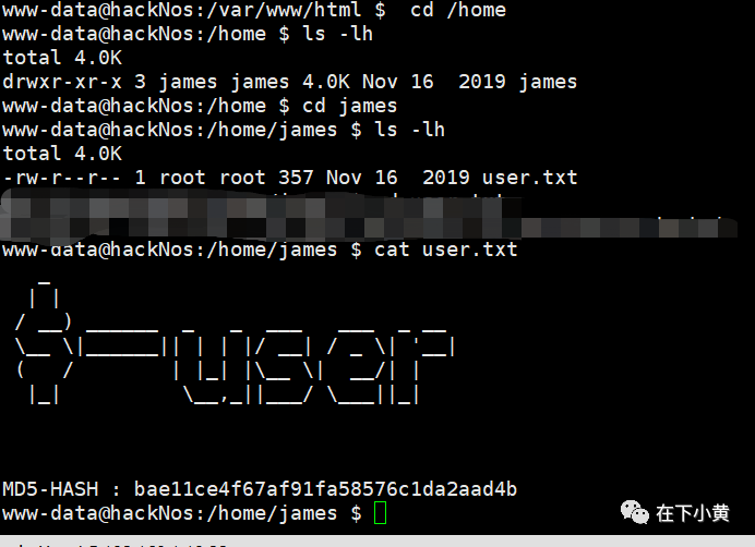 在james用户目录下发现一串MD5哈希,估计是密码