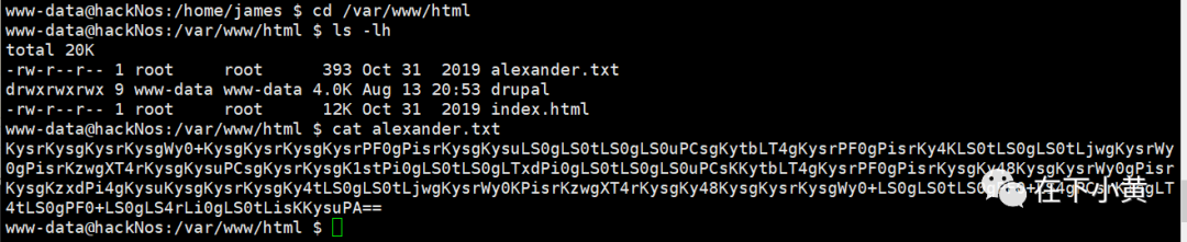 cat alexander.txt 在这个文件中发现一串base64编码的密文