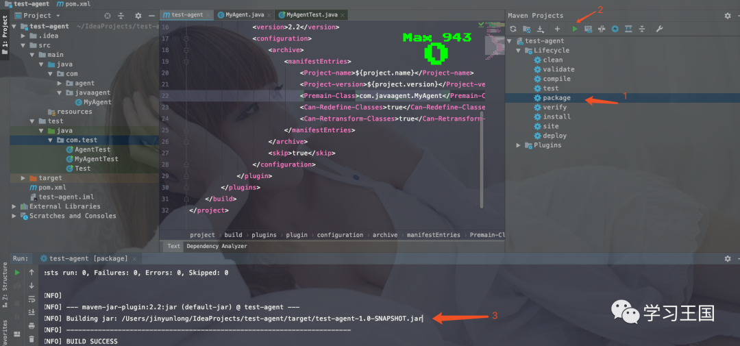 创建一个测试类MyAgentTest并运行查看结果