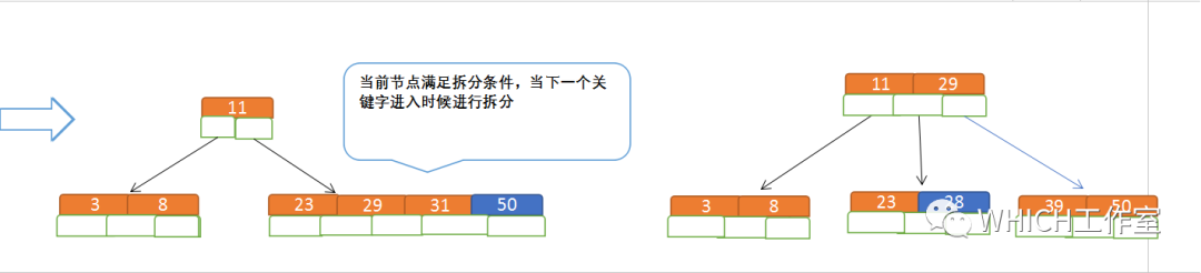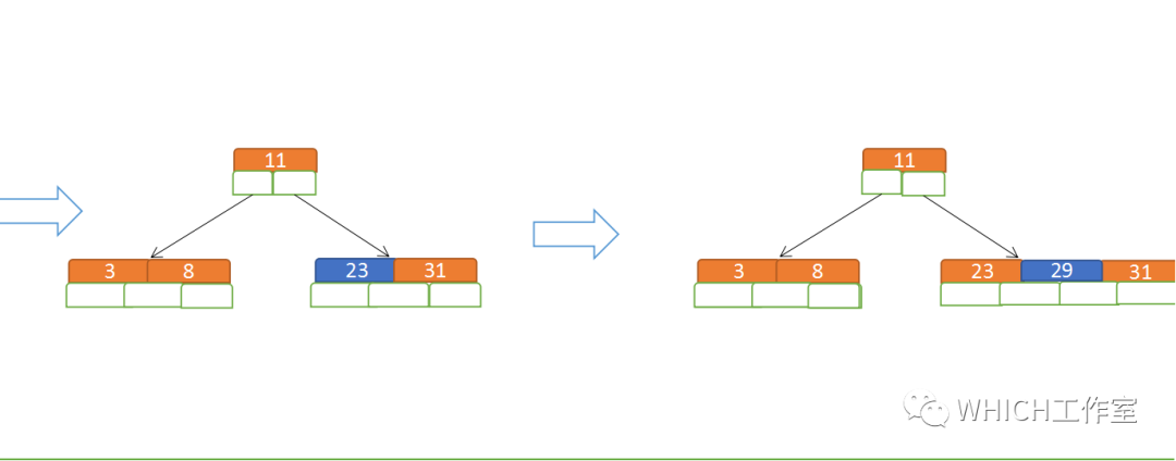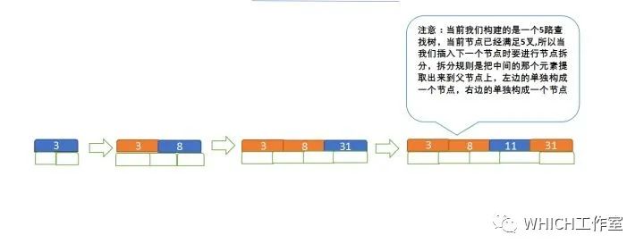 定义一个5阶树(平衡5路查找树;),现在我们要把3、8、31、11、23、29、50、28 这些数字构建出一个5阶树出来;