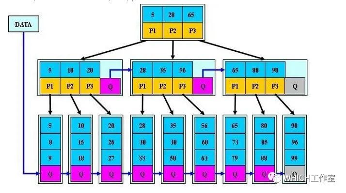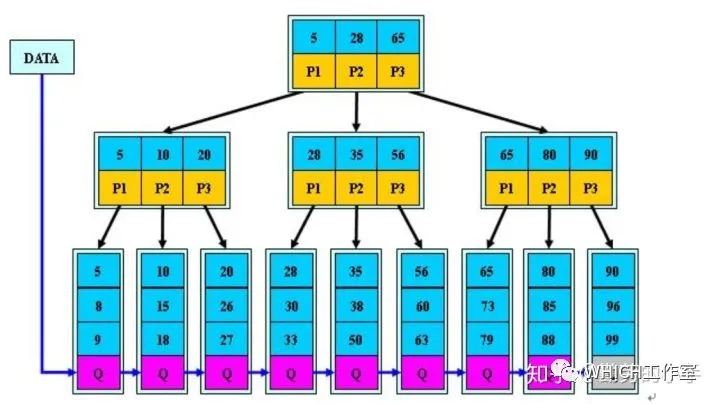 (3)B+树叶子节点的关键字从小到大有序排列,左边结尾数据都会保存右边节点开始数据的指针。