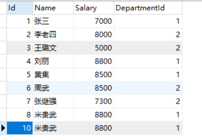 select a.`Name`,a.Salary,b.Name from employee a,department b WHERE a.DepartmentId=b.Id And