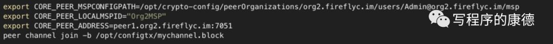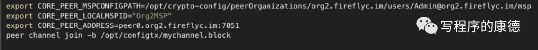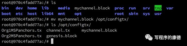 为了操作方便我把它放到/opt/configtx下。接下来设置一下环境变量,把org1中的peer0加入channel中。