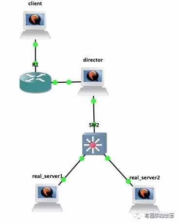 Director和Real Server必须三层可达,拓扑图中故意加上一个R2用于分割两个广播域;