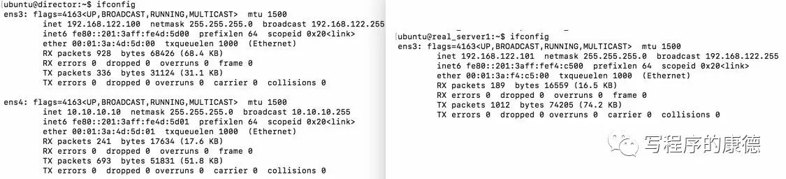 Nginx的返回数据包交给Linux协议栈,系统发现目标地址是172.10.10.10和自己不在同一个网段,则把数据包交给网关——192.168.122.100(director)。这就是Real Server必须把网关指向Director Server的原因