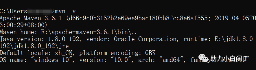 Maven下载解压完后,在path环境变量里面配置一下Maven的bin目录,然后打开我们的命令窗口输入:mvn -v,如果出现下图内容,则表示Maven安装成功: