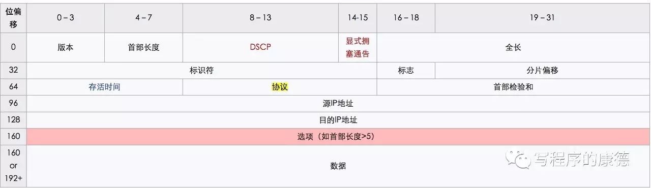 第一个4是表示是IPv4(占4bit);5表示头部长度为5个32bit(这个IP头部一共20个字节,说明这个数据包没有包含“选项”);后面这个字段需要特别注意,有些资料直接把它解释成TOS,不是完全正确的。它有两部分含义DSCP就是传统意义上的TOS,这里02是一个字节(8个二进制位)前6bit用来表示TOS,这里是0(很多设备是忽略TOS字段的);后面2bit显式拥塞通告(ECN)是一种新增的特性(甚至Windows7还不支持)用来显示告知对方自己是否支持拥塞控制(如果对端发生了拥塞会自动通过这两个字段告知你——我忙不过来了,兄弟你慢一点~~)。二进制10(十进制2)表示支持ECN特性。(tcpdump ip头部输出tos 0x2,ECT(0)表示支持ECT,不支持会显示成Not-ECT)