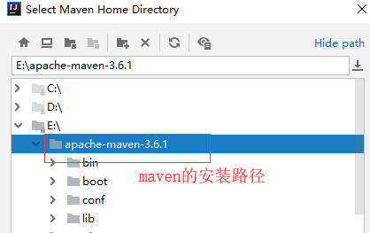 选择右边窗口的Maven home directory 选择你mavan的安装路径