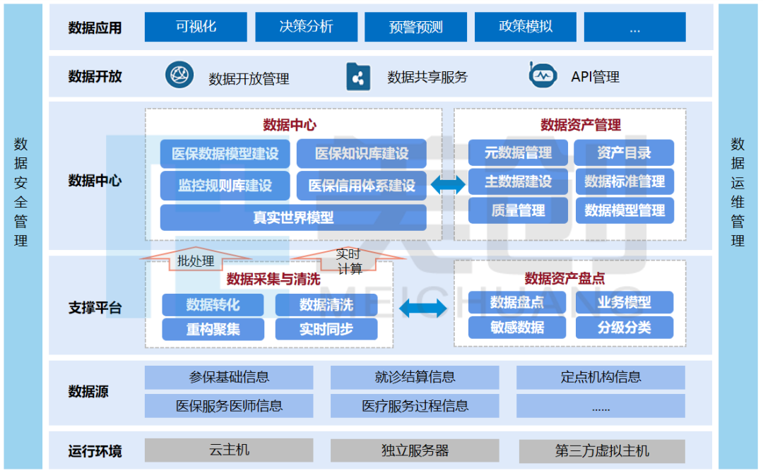 【医疗保障基金监管平台】通过数据实时采集与处理,建立统一的医保数据中心,打通各个系统之间的信息孤岛,并通过对数据的建模、融合分析、可视化展示,达到支撑动态监管、提高监管工作效率的目标。