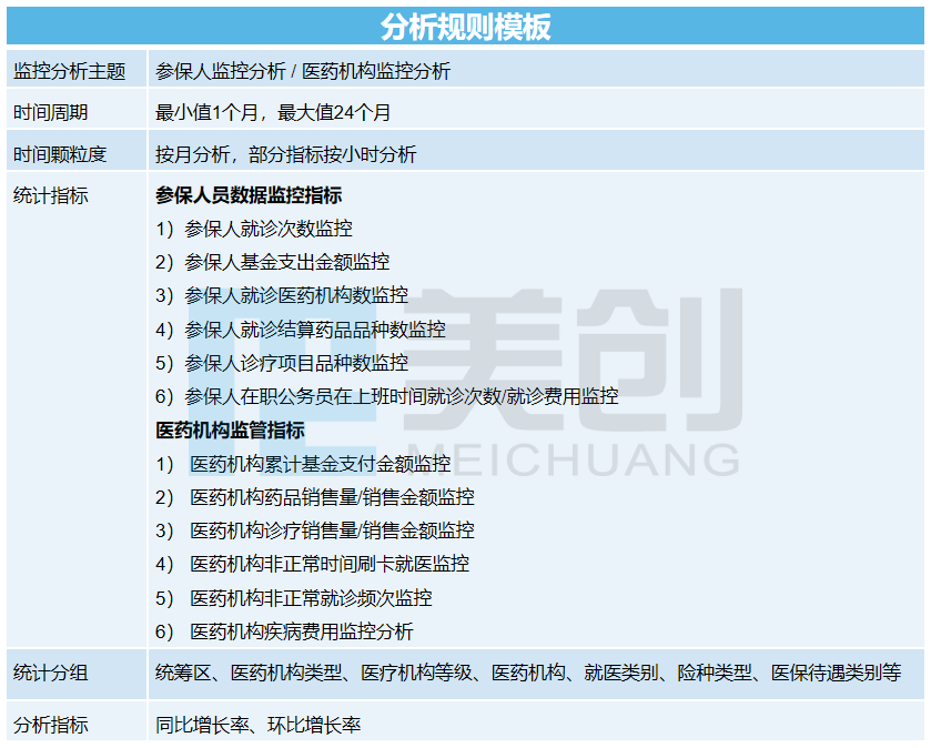 美创基于国家和地方医保政策规定,结合临床医学和药学,提炼形成了医保知识库和监控规则库。