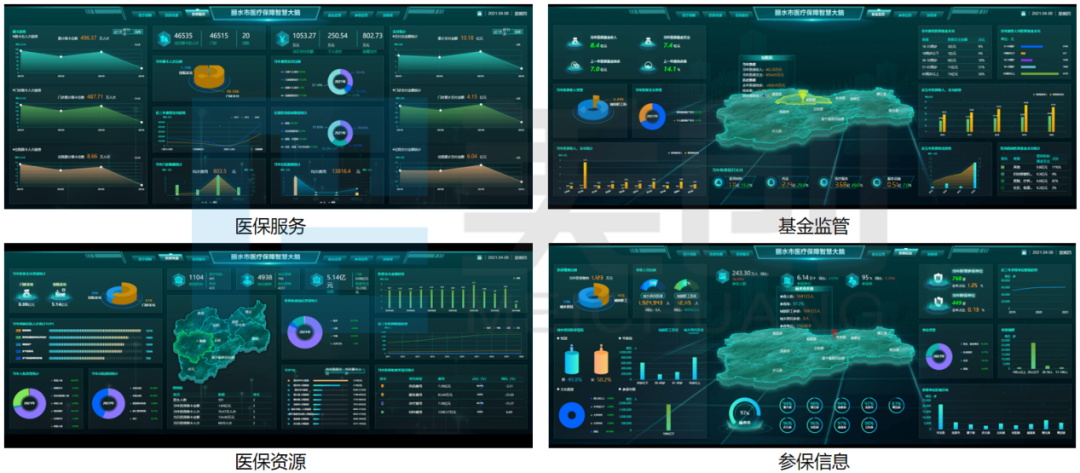 为医保局提供预先定义的管理驾驶舱模板,如医保服务、基金监管、参保信息、医保资源等维度数据的可视化分析;