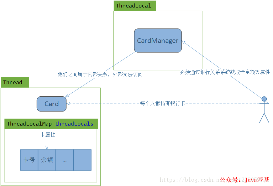card类似于Thread card余额属性,卡号属性等类似于Treadlocal内部属性集合threadLocals cardManager类似于ThreadLocal管理类