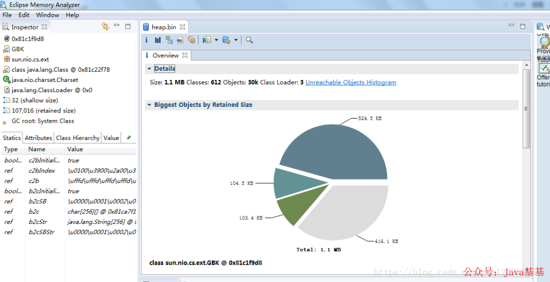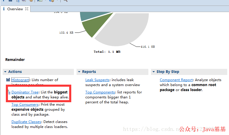 然后我们借助MAT可视化分析工具,来查看对内存,分析对象实例的存活状态: