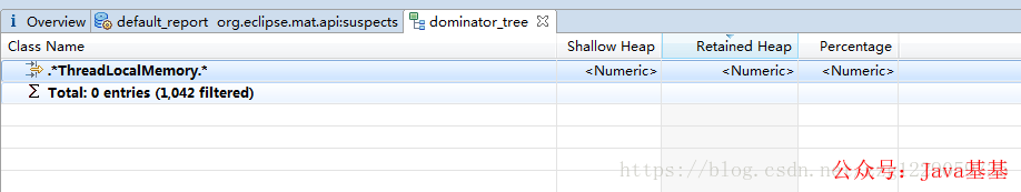 最后我们要确定Entry.key是否还在?打开Dominator Tree,搜索我们的ThreadLocalMemory,发现并没有存活的实例。