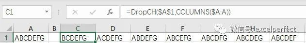 =DropCH($A$1,COLUMNS($A:A))