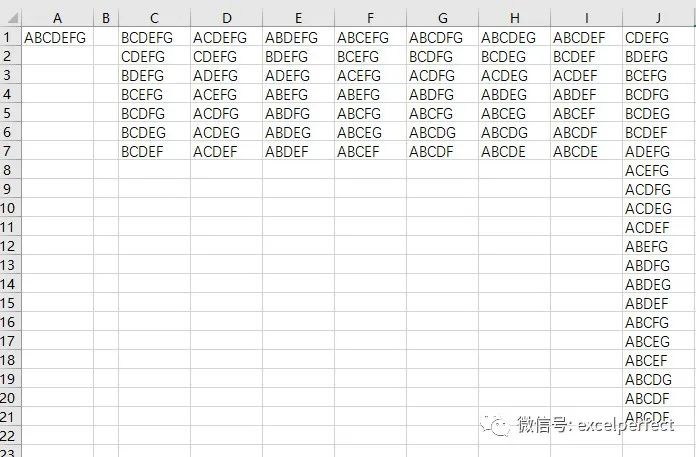 这将在列J中放所有的不重复的5个字符组合,如下图3所示。