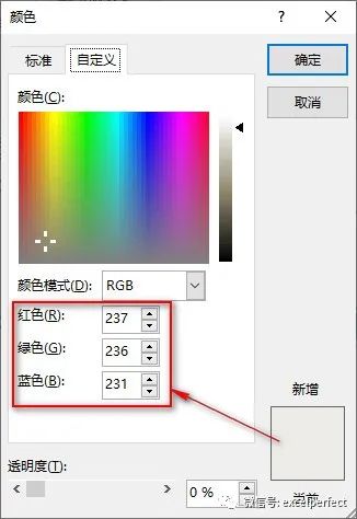 执行同样的操作,可以查看形状轮廓的颜色,这些数值将用于在Excel设置柱形条的颜色。