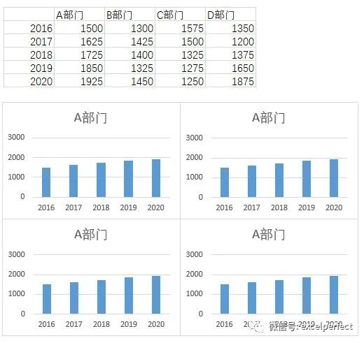 首先,将当前图表复制3份并排列整齐,如下图4所示。