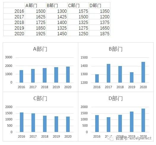 然后,选择右上角的图表,按照上文所述的方法将数据拖到B部门,结果如下图5所示。