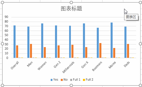 我现在想要选择Full1或者Full2系列,太小了,很不好选,怎么办?此时,方向键就起作用了,如下图3所示,选择图表后,按方向键,就可以准确地选取Full1或者Full2系列。