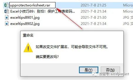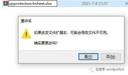 首先,将该Excel工作簿的后缀改为.rar,即压缩文件,如下图3所示,单击按钮“是”。