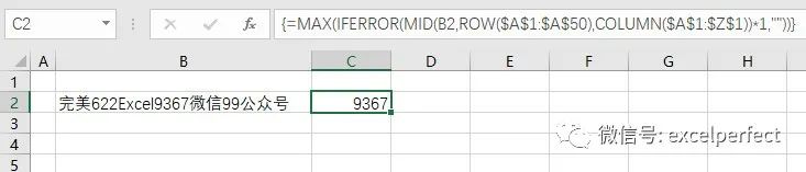 =MAX(IFERROR(MID(B2,ROW($A$1:$A$50),COLUMN($A$1:$Z$1))*1,""))
