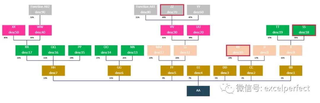 列A和列B – 两个元素之间的关系。形状填充颜色将来自列A。