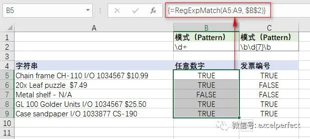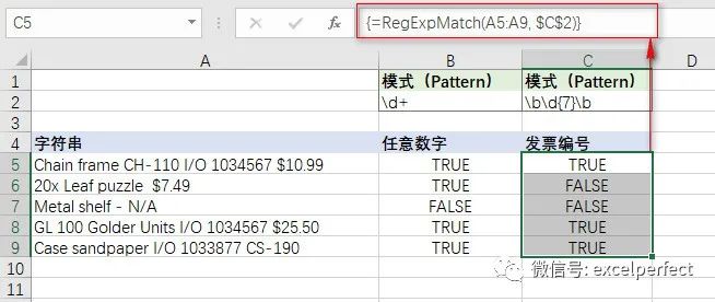 3.如果没有找到有效的模式,则函数返回FALSE;如果模式是无效的,则发生错误#VALUE!。