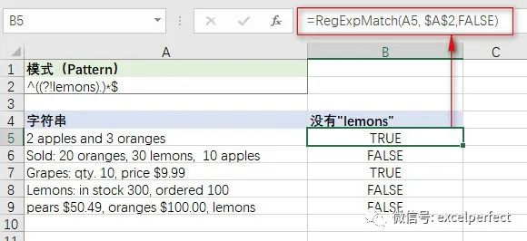 要匹配单个单元格中的字符串,在第一个参数中引用该单元格,第二个参数中包含一个正则表达式。