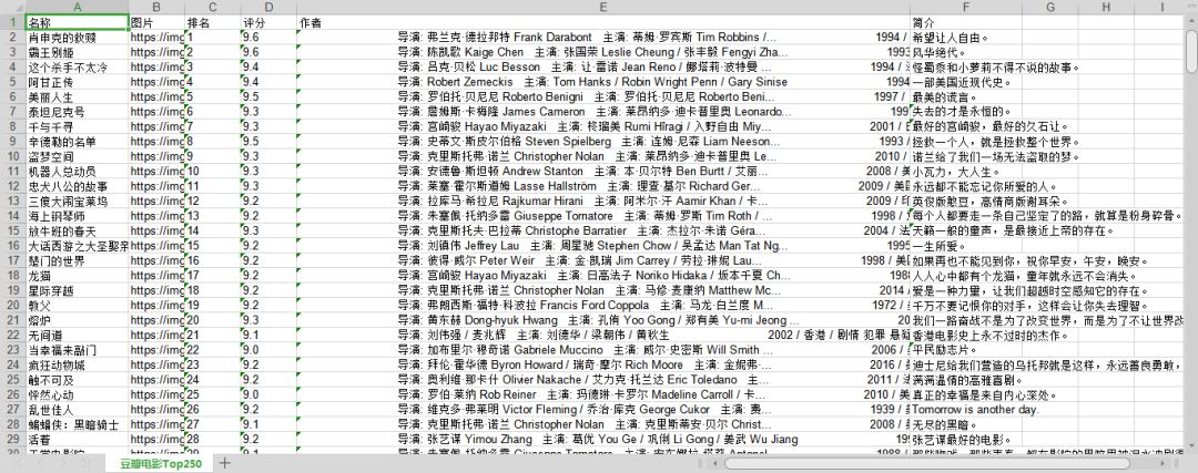 book.save(u'豆瓣最受欢迎的250部电影.xlsx')