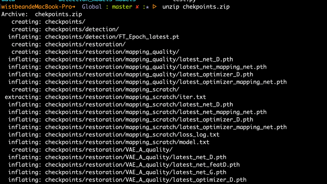 unzip checkpoints.zip