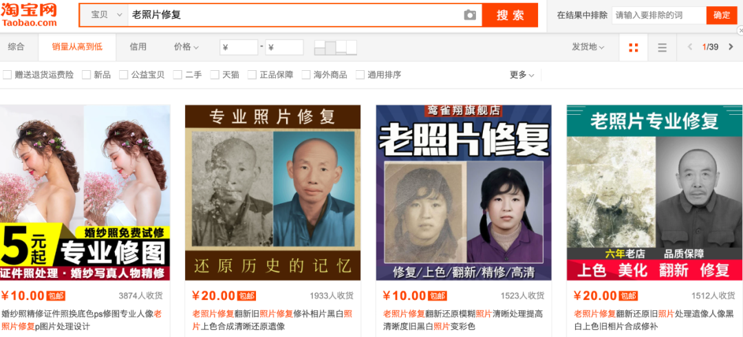 写到这里,小帅b在淘宝搜了一下「老照片修复」,这...商机啊!