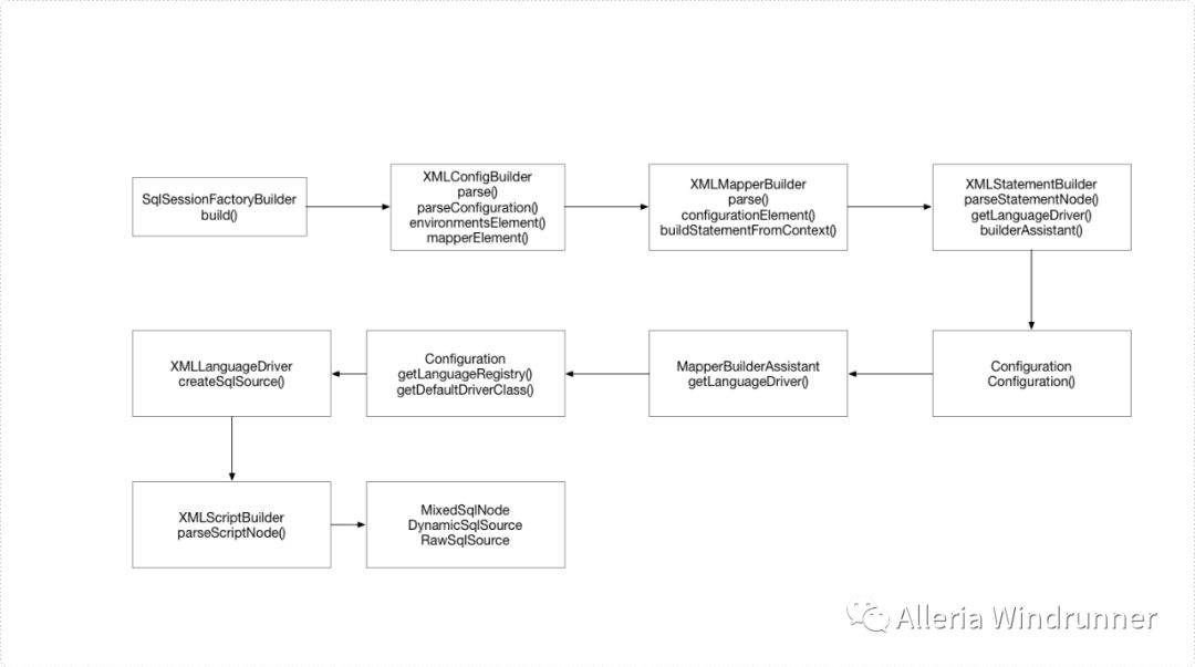 SqlSessionFactoryBuilder build() XMLConfigBuilder parse() parseConfiguration() environmentsElement() mapperElement() XMLMapperBuilder parse() configurationElement() buildStatementFromContext() XMLStatementBuilder parseStatementNode() getLanguageDriver() Configuration Configuration() MapperBuilderAssistant getLanguageDriver() Configuration getLanguageRegistry() getDefaultDriverClass() XMLLanguageDriver createSqlSource() XMLScriptBuilder parseScriptNode() MixedSqlNode DynamicSqlSource RawSqlSource builderAssistant()