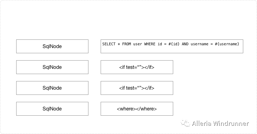 从SqlNode的示意图中可以看出其实现也是针对动态sql标签来的,ifSqlNode、ChooseSqlNode等都是我们开发中使用的滚瓜烂熟的标签。其实对于sql语句来说mybatis是这么识别的: